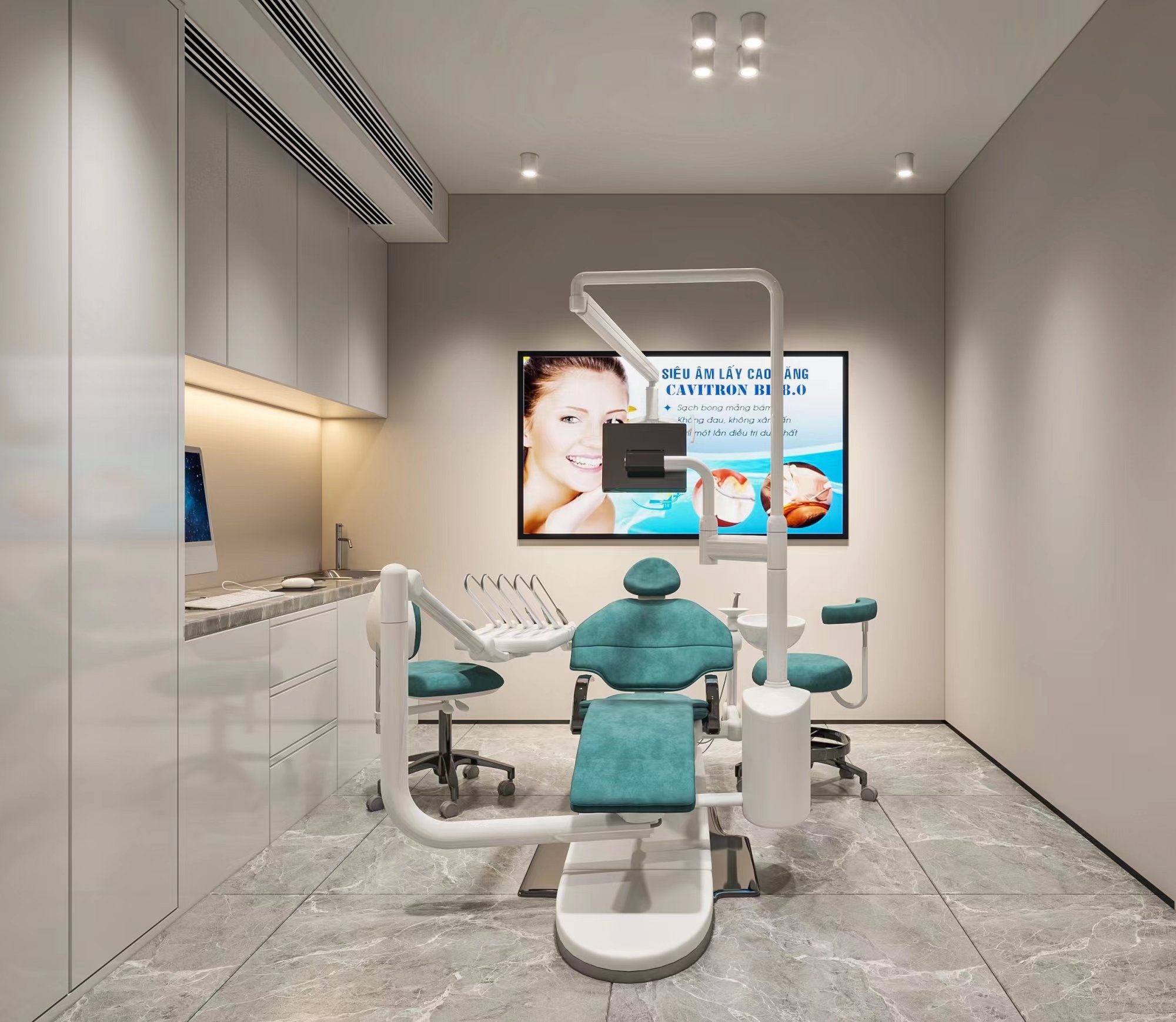 石家莊專業(yè)牙科診所裝飾公司在設(shè)計(jì)的家具多用非落地設(shè)計(jì),方便以后的打掃工作。